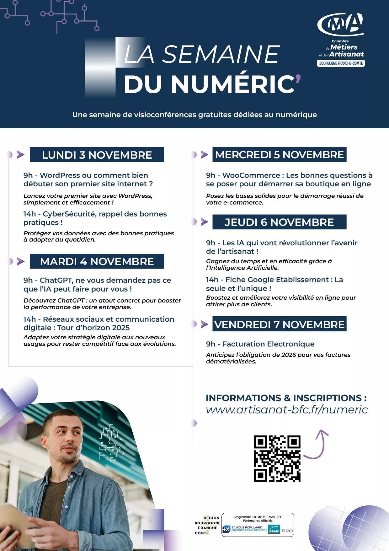 Vendredi 7 novembre - 9h00 Facturation Electronique Anticipez l’obligation de 2026 pour vos factures dématérialisées. Inscription ici |